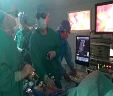6月21日,我院肿瘤中心成功开展了惠州市首例3D腹腔镜术中超声引导下肝脏肿瘤精准消融术,手术过程约1.5小时左右,无出血。