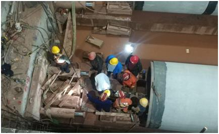 12月20日晚上,我院急诊科医务人员联合消防部门成功救出地下10余米处伤员。 当天晚上,急诊科接市120急救电话,大亚湾龙海二路万达广场对面地下高压线隧道工地施工人员在地下10余米的隧道内作业时,不慎被掉落巨石砸伤腿部,无法移动,我院急诊科蓝裕江医生和刁锦翔护士随即出车赶往现场。 现场初步了解伤者受伤过程以及隧道内环境后,蓝医生随即请求消防支援;考虑患者生命安全,他决定让同事在地面待命以应对二次意外险情,自己携带急救用物,奋不顾身下井救援。
