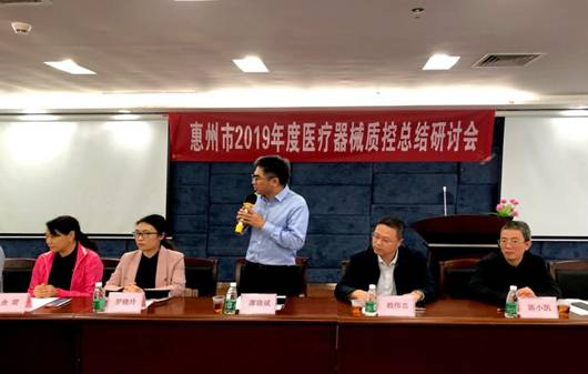 会议第一项议程由广东省医学装备质量控制专业委员会副主任委员、市医学会医学工程学分会主任委员、市医疗设备器械质控中心主任廖晓斌代表市医疗设备器械质控中心做专题总结报告。在报告中,廖晓斌主任回顾惠州市医疗设备器械质控中心发展历程,总结了2019年质控管理的工作亮点和短板,并对质控中心下一年度的工作做出了详细计划。