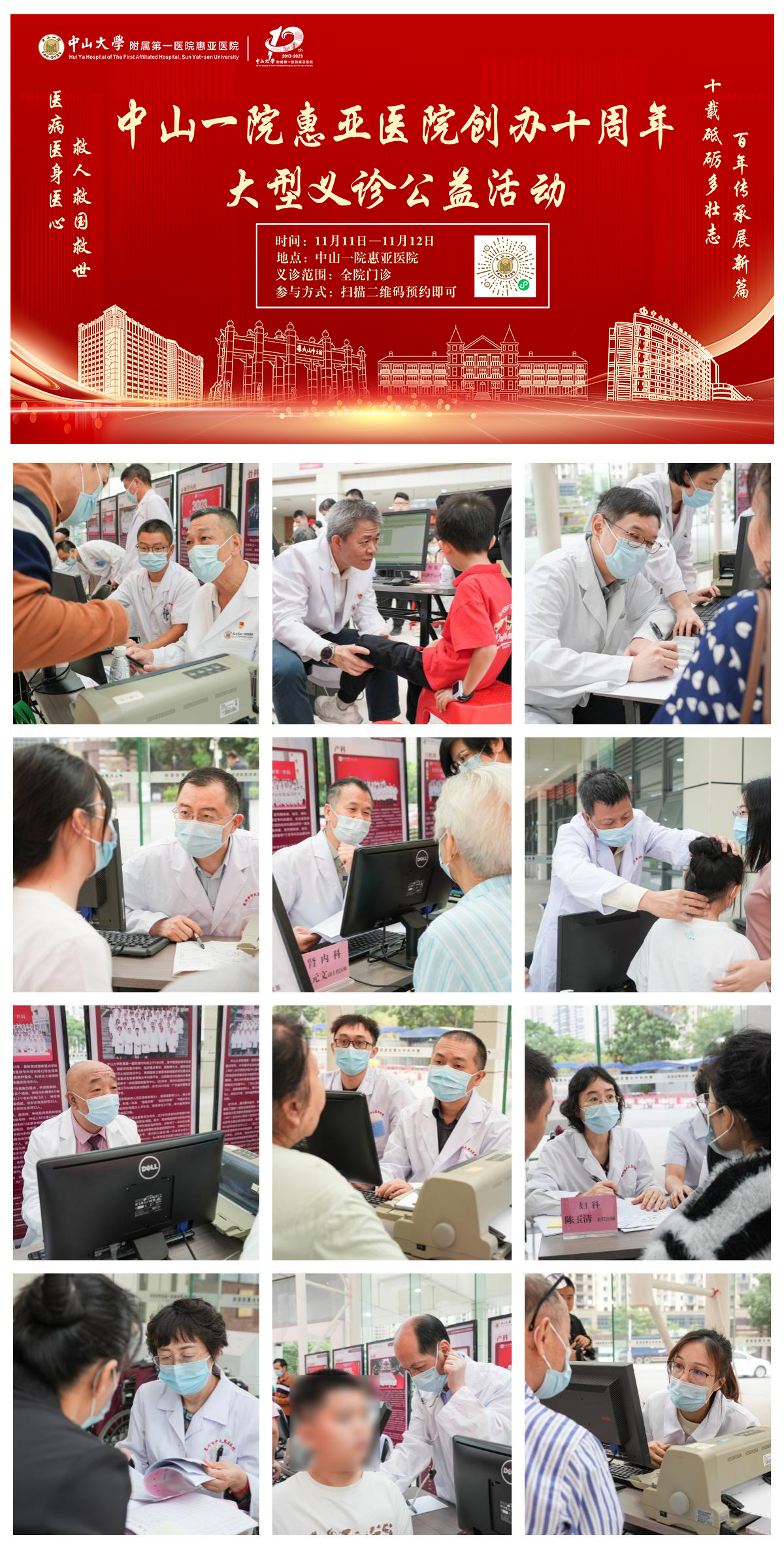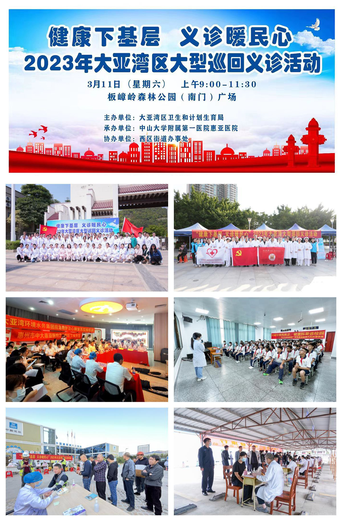 义诊现场设有心血管内科、神经内科、精神心理科、肾内科、呼吸内科、消化内科、泌尿外科、小儿外科、胃肠外科、胸外科、肝胆外科、神经外科、骨科、脊柱外科、妇科、产科、儿科、耳鼻喉科、中医科、皮肤科、康复科、疼痛科等科室。全院2天门诊共4000多个义诊号源,特别邀请了中山一院柔性引进专家教授团队前来,将国家级优质医疗资源下沉到大亚湾人民群众的家门口,还有中山一院常驻专家教授团队,惠亚医院专家教授团队以及南丁格尔工作室护理骨干,让当地居民享受到便捷、优质、专业的医疗服务。