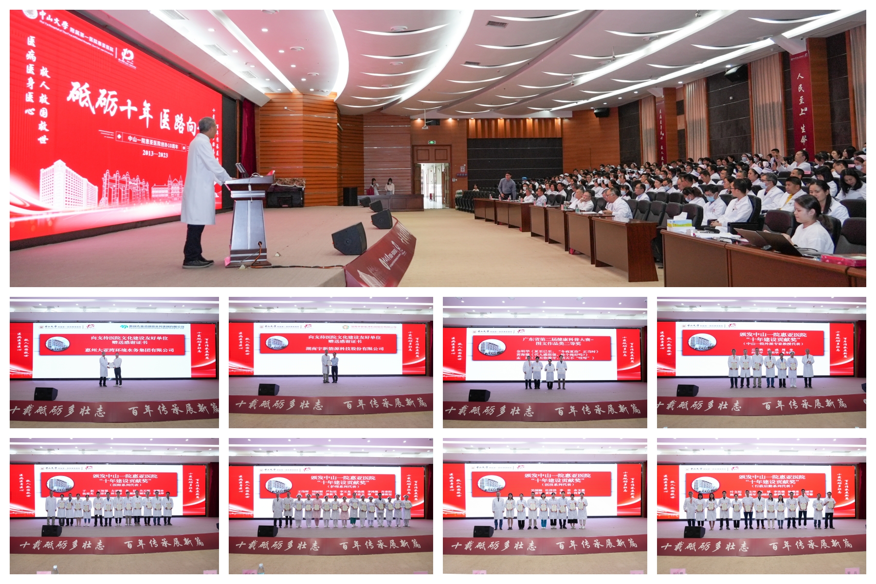 会上,多位职工代表分享了艰苦创业的心路历程,全方位、多角度展现了医院在艰苦创业、稳步向前、拼搏提升等各个时期的发展历程。随后为支持医院文化建设的友好单位表达感谢;对获评广东省第二届健康科普大赛图文类二等奖的健康科普作品等进行了表彰颁奖;对参与医院建设发展作出贡献的人员予以表扬,以感谢他们与医院携手并进同行十载。