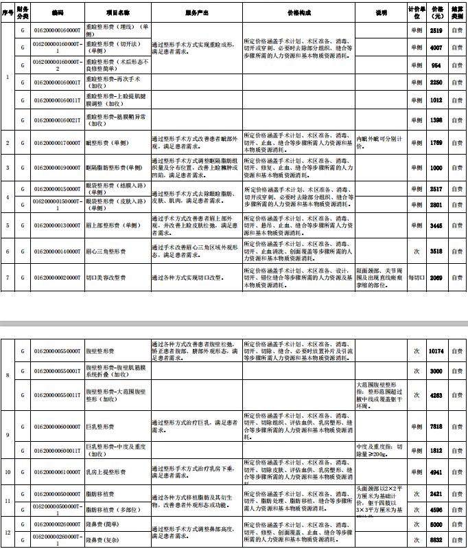关于“重睑整形费”等12项市场调节价医疗服务项目价格的公示