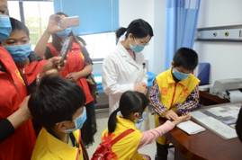 上午8:30,门诊办护士长王磊带领社工人员及学生家长们参观医院就医流程。从挂号开始,按照既定路线参观了口腔科、眼科、中医科及急诊科,分别讲述了各科室就诊流程及注意事项:了眼睛和口腔的保健和卫生知识;让学生们学习正确的七步洗手法;通过把脉体验中医文化;在遇到紧急情况时,应当如何采取正确的求救措施等。